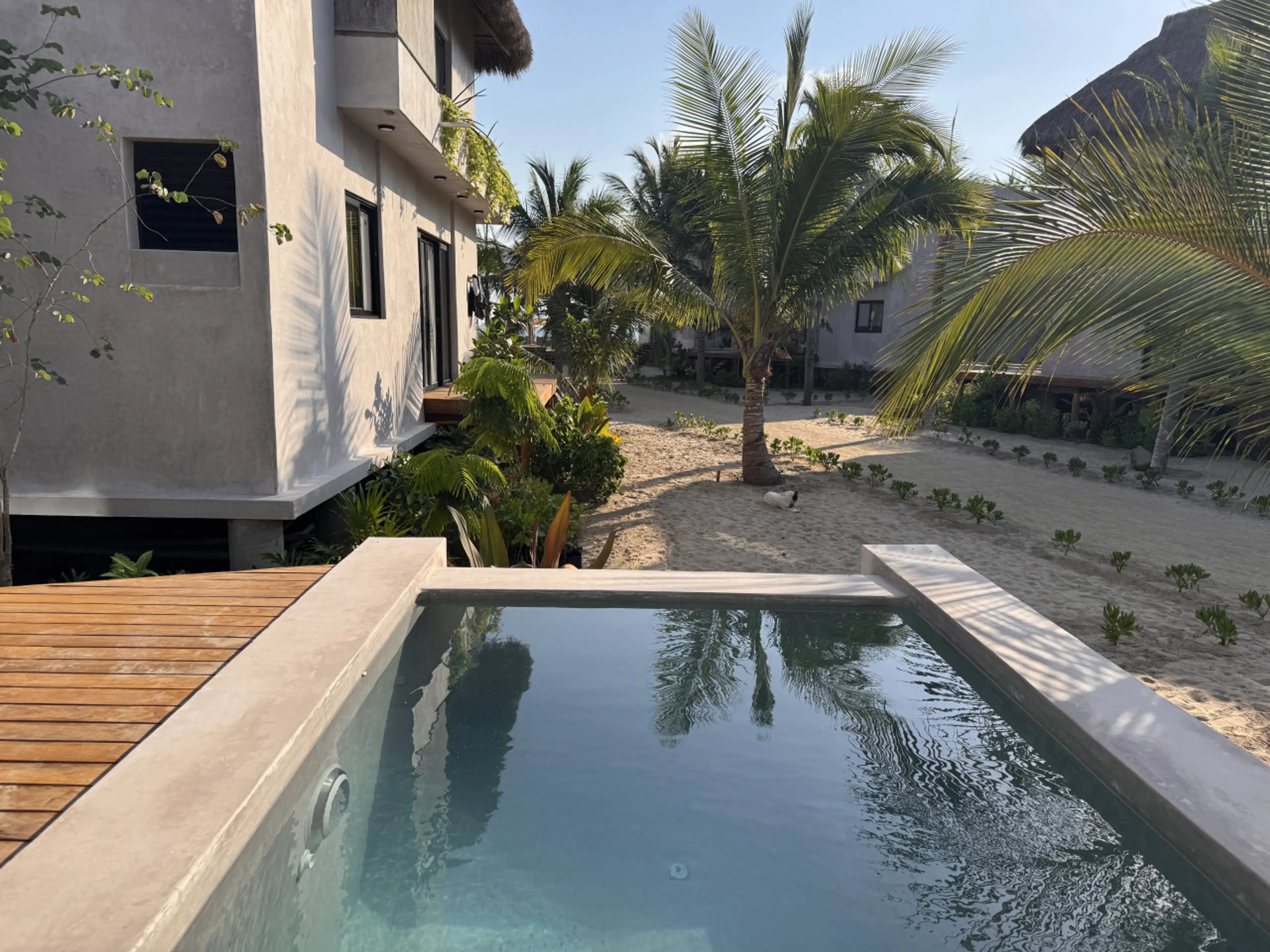 Ubicada en la cuarta fila del complejo, la Villa A7 funciona como un verdadero refugio dentro de Aldea Cayaco. Su deck con alberca privada, ubicado al mismo nivel que la sala y la recámara de la planta baja, invita a los huéspedes a disfrutar de tranquilidad y privacidad. En el interior, la villa c...